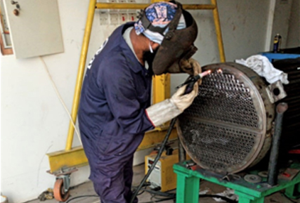 Old tubes are removed if found any damages along with the tube ends .Any minor tube sheet cracks are then repaired to the ASME code specifications.